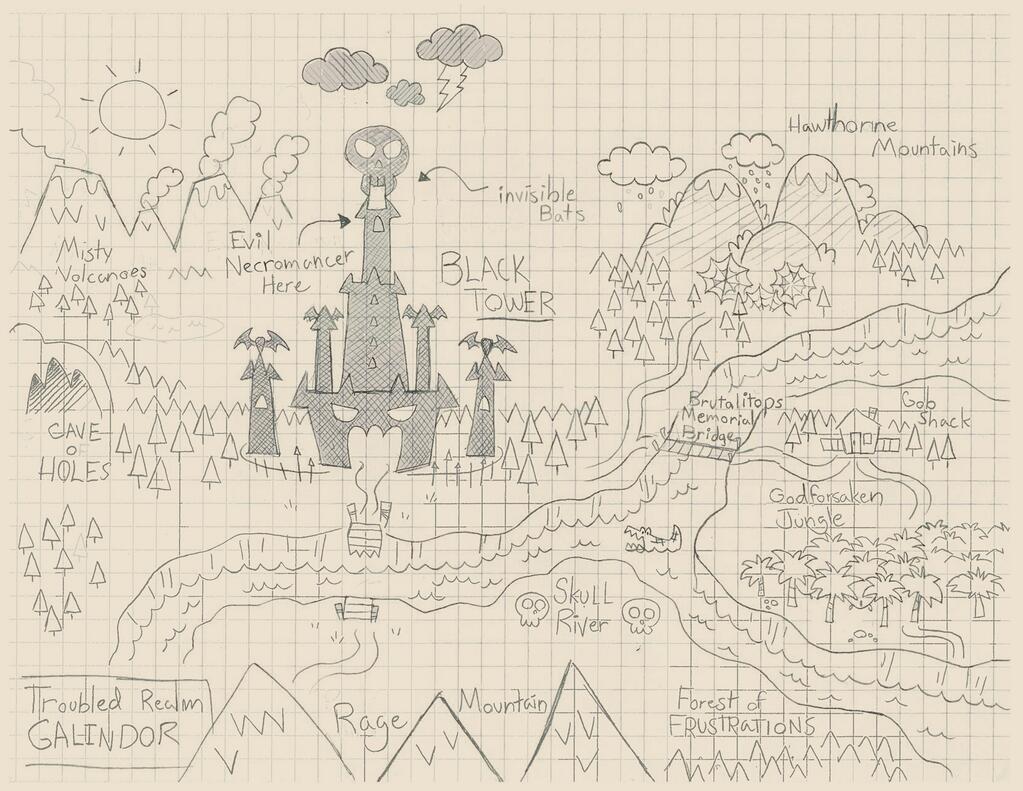 Abed's map features Brutalitops Memorial Bridge, commemorating the Death of Brutalitops, Chang's character from the last D&D game; and Hawthorne Mountain, a reference to the now-deceased Pierce Hawthorne.