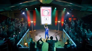 | Six days later, the beta test of the app is released and the campus has changed drastically. A social caste system has been imposed with the "Fives" in charge and the lower numbers serving them. This group consists of Shirley, Chang, Abed, Hickey, and an older student named Koogler. Under their influence, the campus decor and dress style reflect a quasi-futuristic look. In the redecorated study room, the "Fives" sense dissension from the proletariat and decide to hold a talent competition to distract them. Britta learns about this from her spy Star-Burns and passes the information to Jeff, who was recently made a "Four."