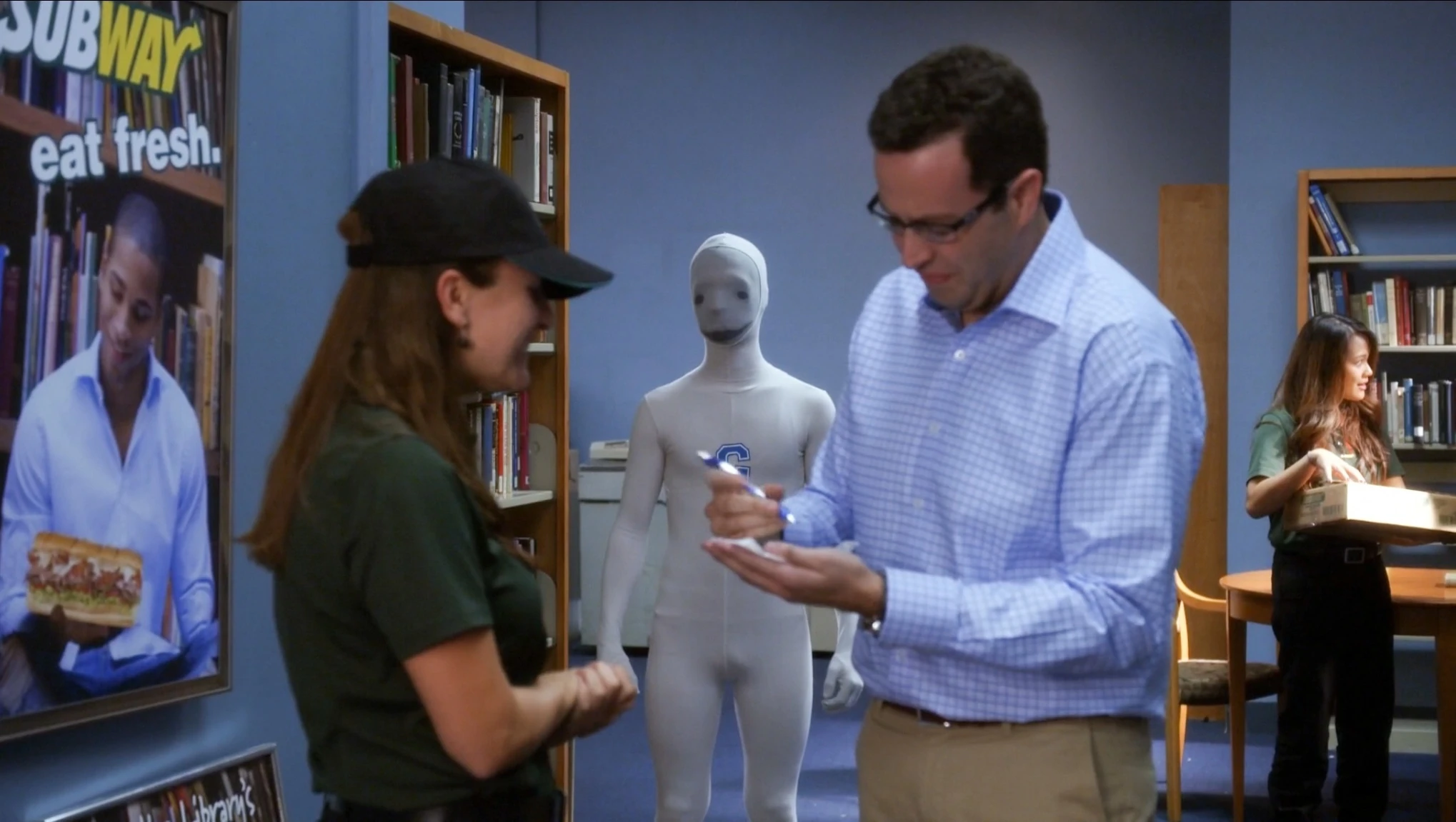 Shout Out: In a scene after Subway is revealed to be buying the school, a man who looks nearly identical to Jared Fogle, the Subway spokesperson at the time, can be seen giving an autograph on a Subway napkin.