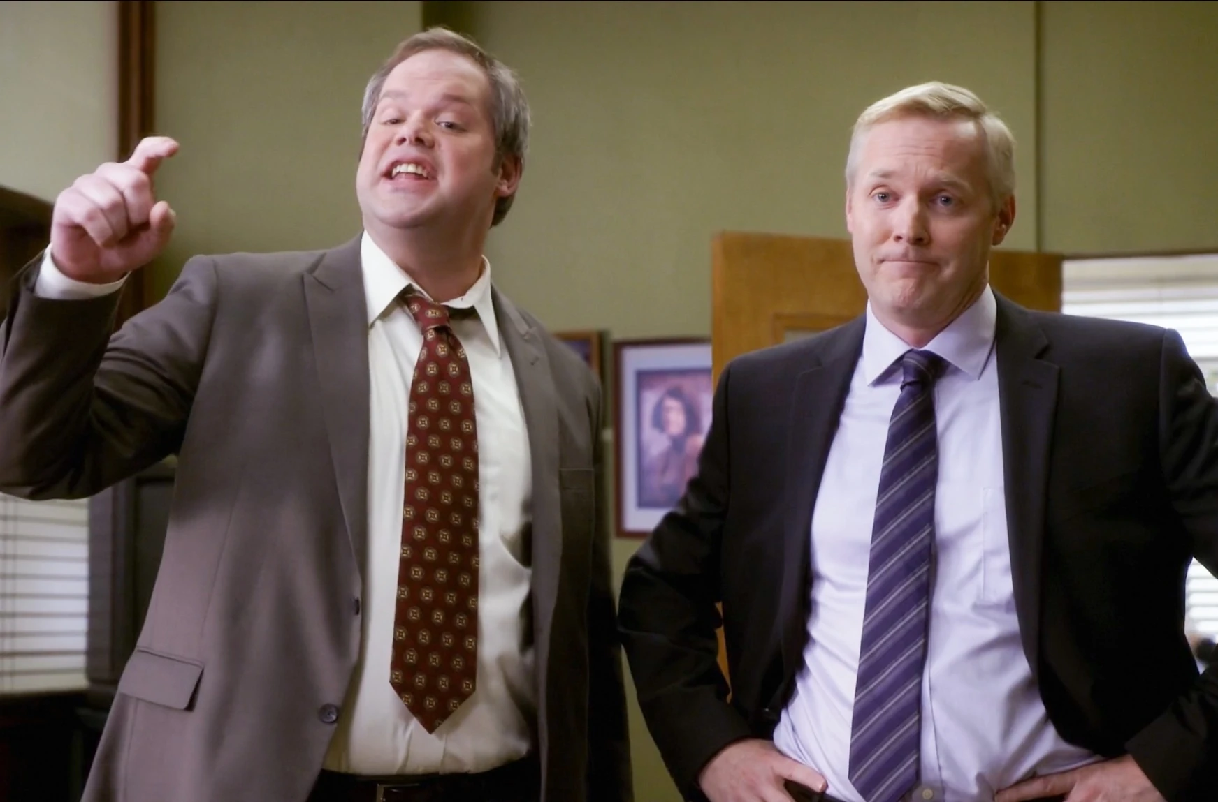 Buzz Hickey and Ian Duncan share a drink in Duncan's office while commiserating about their next steps. The two soon learn that Hickey was stationed in Duncan's family hometown of Scunthorpe in Lincolnshire, England. The conversation takes a turn when they at first believe Hickey lost his virginity to Duncan's mother, but are quickly relieved to learn it was more likely his aunt. Duncan explains he will probably stay with his cousin Clive, adding that Hickey and Clive would probably get along, only to then be left pondering the implications of that.