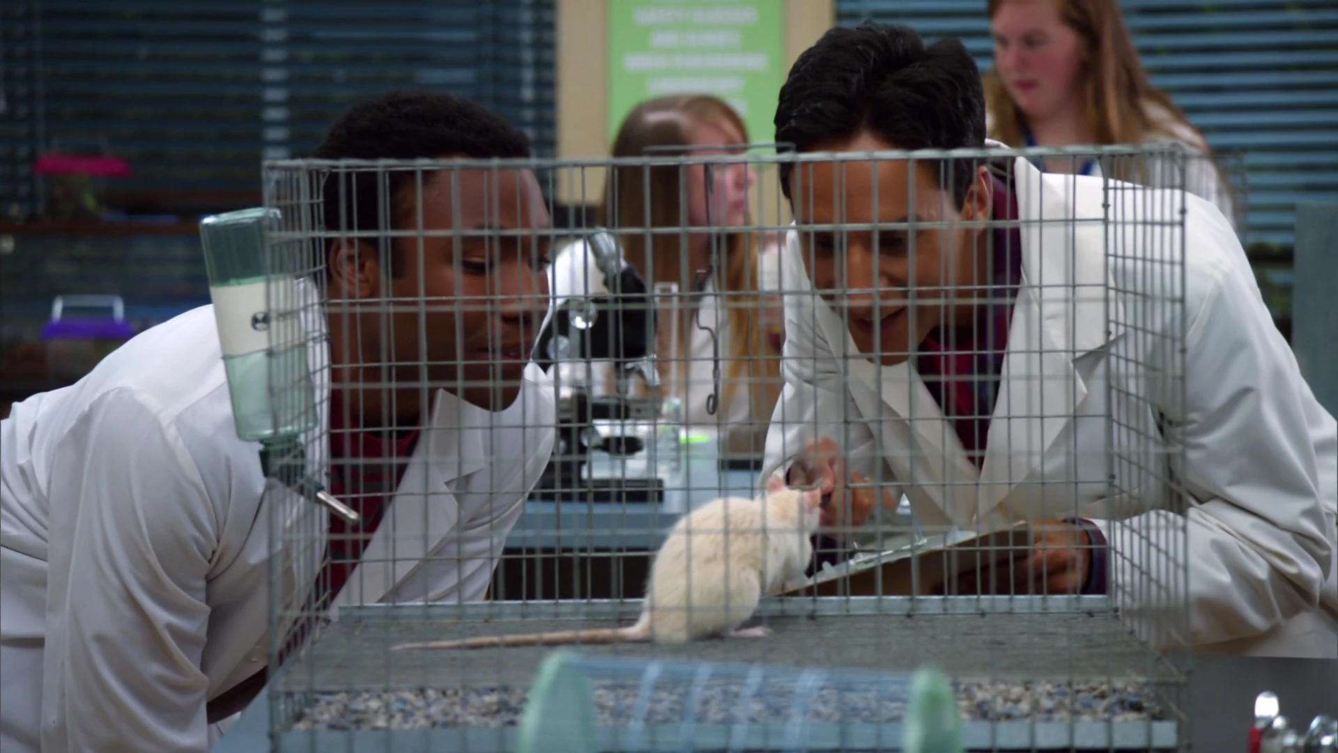 | In the study group's first year at Greendale, Troy and Abed were lab partners in a science class together. As part of an assignment they were given a rat to experiment on. Naming him Fievel their first lab assignment was to teach him to to respond to a particular song. Unlike the other students, the song they chose was a duet named "Somewhere Out There", the theme song from an "An American Tail". Troy's fear of rodents kept him from bonding with the rat as Abed had. He accidentally backed into another classmate who was handling her rat. Frightened by the rodent, he ends up knocking over Fievel's cage and the rat is set free. Due to Fievel being on the loose an exterminator was called in to deal with the problem the following day.