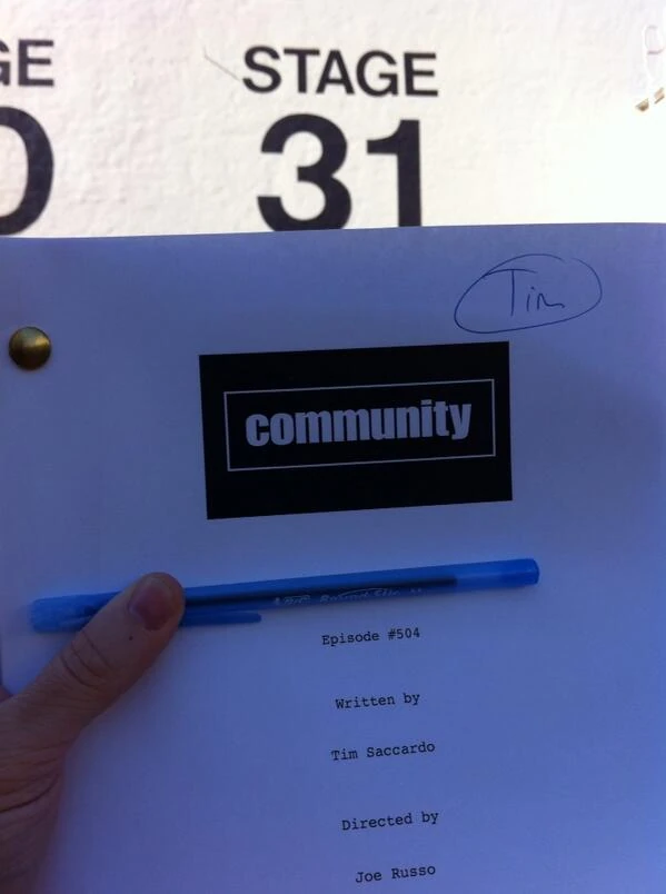 On September 12, 2013, Community writer Tim Saccardo tweeted a picture of this episode's script with the caption: