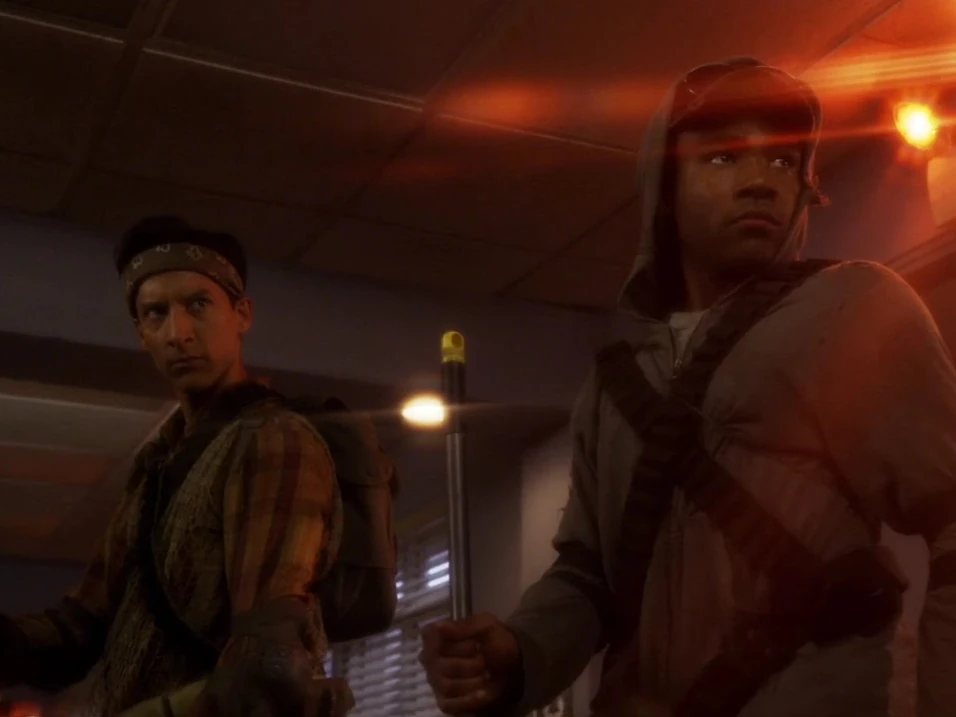 Britta joins them and they begin "centipeding" through the halls with chairs. Britta believes the lava game is Abed's way to put off saying goodbye to Troy. Jeff dismisses her theory as he spots loose chairs. When they approach, several students pop out of the nearby lockers. Ben Chang is the leader of these "Locker Boys" and demands their provisions. Troy and Abed make a heroic entrance and tell Chang to back off. The Locker Boys retreat although it's because of Buzz Hickey arrival riding an intimidating makeshift vehicle. Hickey drives through making quick work of the Locker Boys. The study group members escape with Abed telling the others he and Troy will meet up with them at "Shirley's Island."