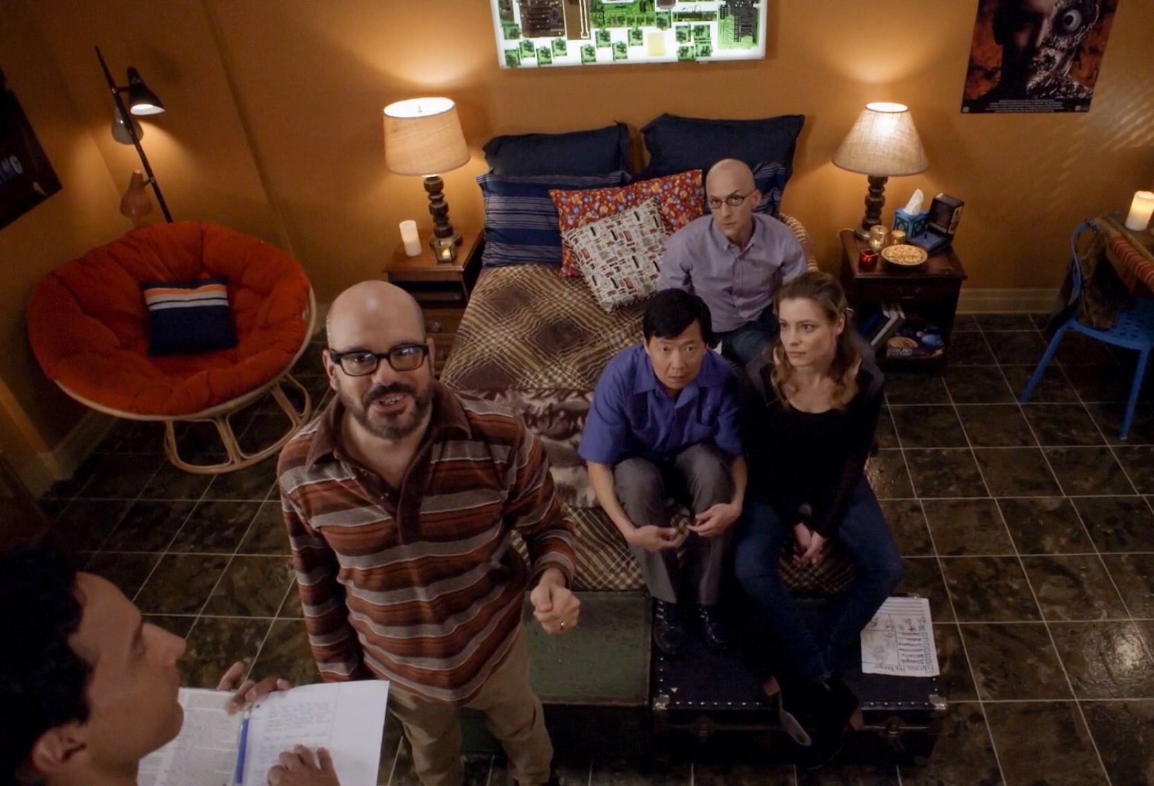 One of Hank's party members, Joseph Gordan Diehard (Dean Pelton), used a magical beacon to contact his "father" Sir Riggs Diehard (Jeff). The light made Hank aware that both groups were not far from the Tower and would soon be crossing each other's paths. By this point Hank had won the loyalty of his group with the exception of Pelton. Jeff and Anne suggest to Buzz he call this off but he refuses believing Hank has already turned their friends against them.