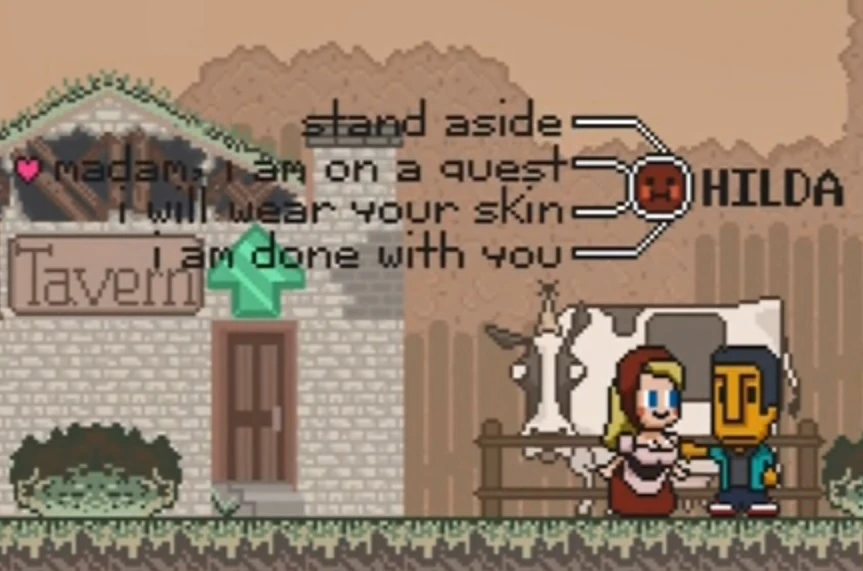 | He elected to stay behind with Hilda and not long after saying goodbye to his friends, Hilda and Abed got married. She gave birth to his children and together Abed's family transformed the town into a metropolis. When the party was sent back to the start of the game by Gilbert again, Hilda and Abed greeted their friends as they entered the now modernized village. Jeff was surprised when Hilda declared her love for Abed who explained that he maxed out her affection and trust levels. This got him access to front end scripting language which Abed then used to have Hilda bear him children. They took them on a tour of their castle and showed them the basement where Hilda's children were hard at work mining ore which they used to build things.