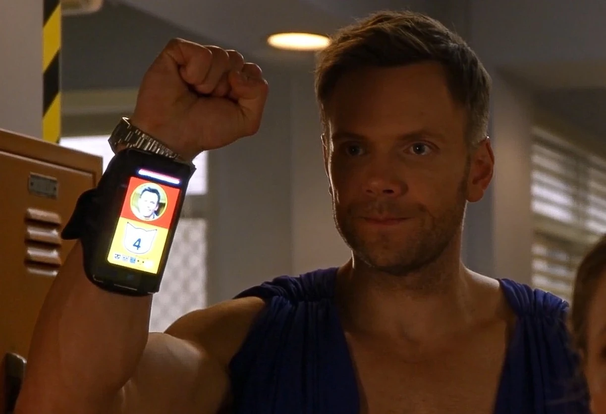 | The Fours wear togas of varying colors along with matching nylon tights, sandals and decorative ornamentation. Like all users, they were equipped with wrist cell phone holders which prominently displayed their rank. They served closely under the Fives in an administrative or entertainment capacity. Annie Edison seemed to have been given a higher status among the Fours as she dealt directly with Shirley Bennett as her assistant. The Fours have some authority given to them by the Fives to boss the Threes and Twos around.