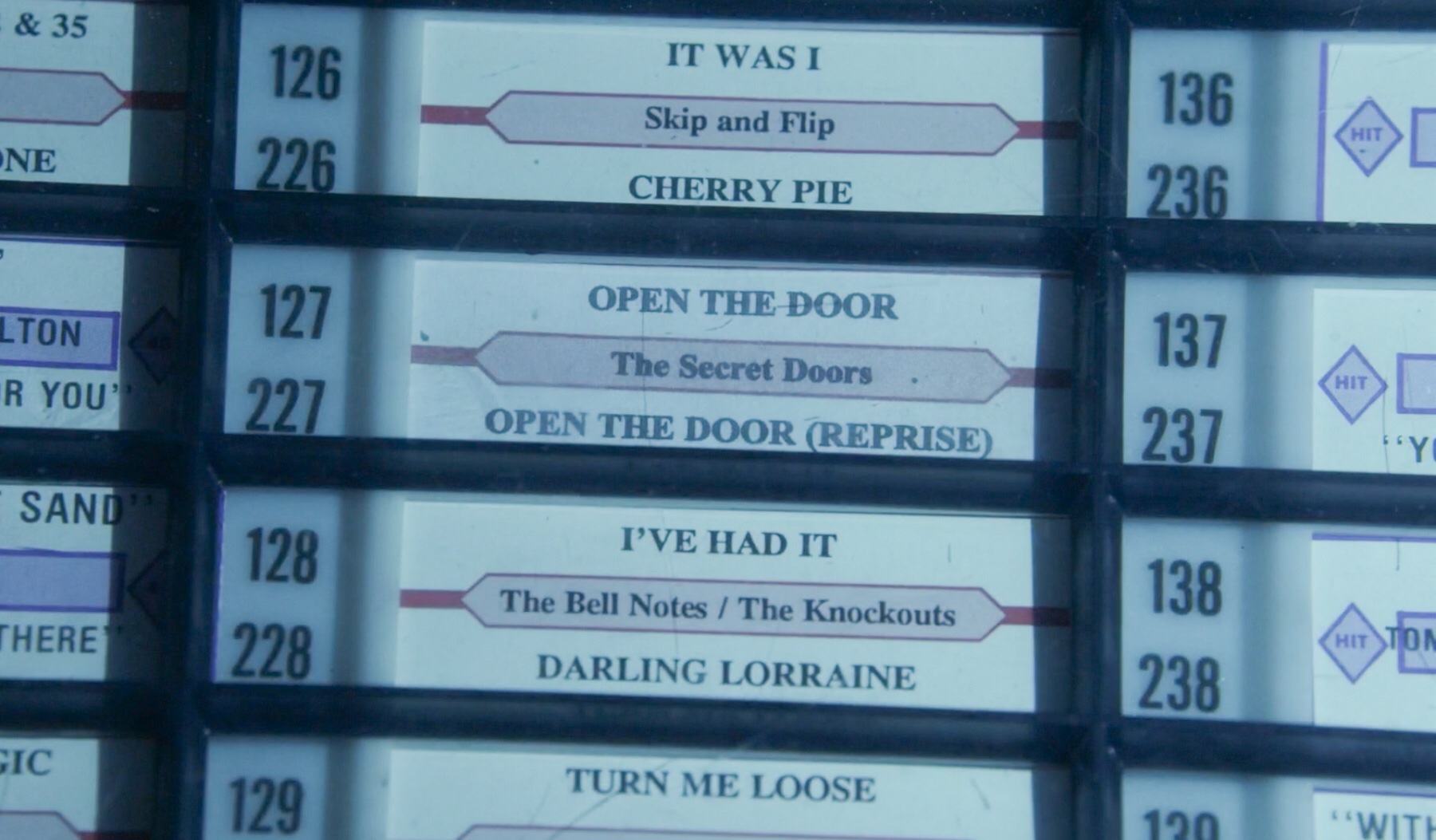| "Open the Door" was a song written and performed by the band "The Secret Doors". It became the key to unlocking one of Greendale's oldest mystery. The Save Greendale Committee were searching the school's underground subbasement for a hidden computer lab. They hoped to find a hidden treasure there to buy back the school before it was sold to the Subway corporation. Abed examined an old jukebox and saw the song "Open the Door" was one of the selections. He had Annie key in the song choice which caused not only the song to start playing but also for the jukebox wall to slide back revealing the entrance to the computer lab. The song was first heard in the Season Five episode "Basic Sandwich". |