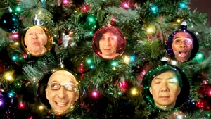 | The end tag has Leonard, Magnitude, and Star-Burns joining Dean Pelton and Chang to close out the show in another musical number. They are all seen reflected on Christmas tree ornaments performing a rendition of "Carol of the Bells" with each speaking a signature word, phrase or sound. During the performance, a cat's paw is seen swatting at the decorations. The cat knocks down Chang's ornament much to the horror of the other performers.