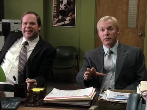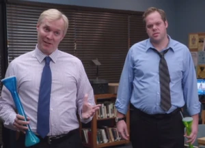 Richie and Carl were later invited to a huge birthday party Chang threw for himself after he took control of the Greendale campus. They congratulated Ben on the new security policies he enacted at school and gave him a shower organizer as a gift. They were in the audience when Jeff and Britta (disguised as the magician "Ricky Nightshade" and his goth assistant) performed a magic trick with Chang as a volunteer. Afterwards, they encountered Dean Pelton and his Chang replacement slap fighting in the hallways. They demanded an explanation from Chang who simply ran away in response. Carl and Richie finally realized they had been duped and began to fear that fallout from Chang's actions could cost them their jobs. They were relieved when Pelton assured them that he would cover up the incident for the school's sake. Carl then suggest to Richie that they go to Skeepers for yard margs. ("First Chang Dynasty")