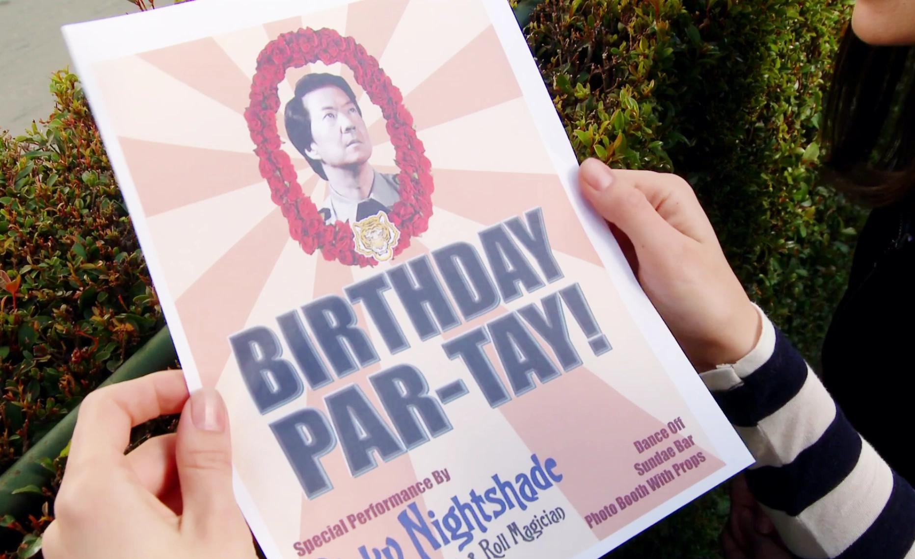 | While still on hiatus, The Community cast took part in a NBC promotional video called "The Brotherhood of Man". They appeared in a musical number alongside other NBC shows "30 Rock", "The Office" and "Parks and Rec". It aired during Super Bowl XLVI pre game show and the segment seemed to have been shot during the filming of the episode "Curriculum Unavailable".