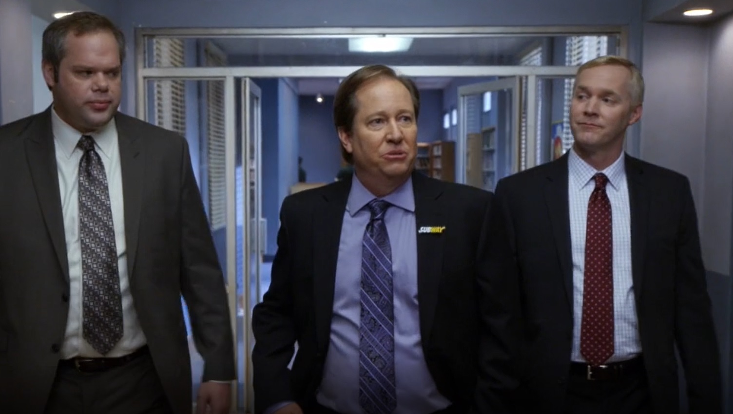 | He chastises "Subway" for his actions saying he should know better and calls him by his real name Rick. On a hidden mic the Subway rep says the code phrase saying "The bread is stale". Two men in black burst into the room and immediately take "Rick" away. However, the Subway rep finds himself in an embarrassing predicament. He had an involuntary priapic response to the recording he just listened to. Unable to stand without giving this away, he asked for someone to hand him his jacket so he could leave. Pelton and the rest were confused by his behavior and didn't comply, unaware he needed the jacket to cover up his unintended reaction. The Subway rep then decided to pretend like he was still upset and remained seated ("Digital Exploration of Interior Design").
