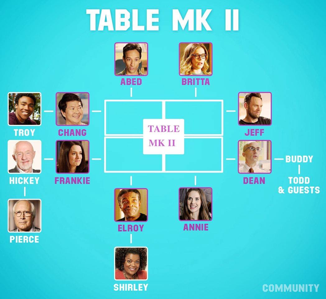 | "Table Mk II" is a custom made piece of furniture crafted by the study group to replace the original study table after it had been accidentally destroyed. It is the same size as the original but unlike its predecessor which was comprised of two separate tables, this version is a single unit. It's further distinguished from the previous table by having its name engraved top of it. The Table Mk II's first appearance was in the Season Five episode "Repilot". |